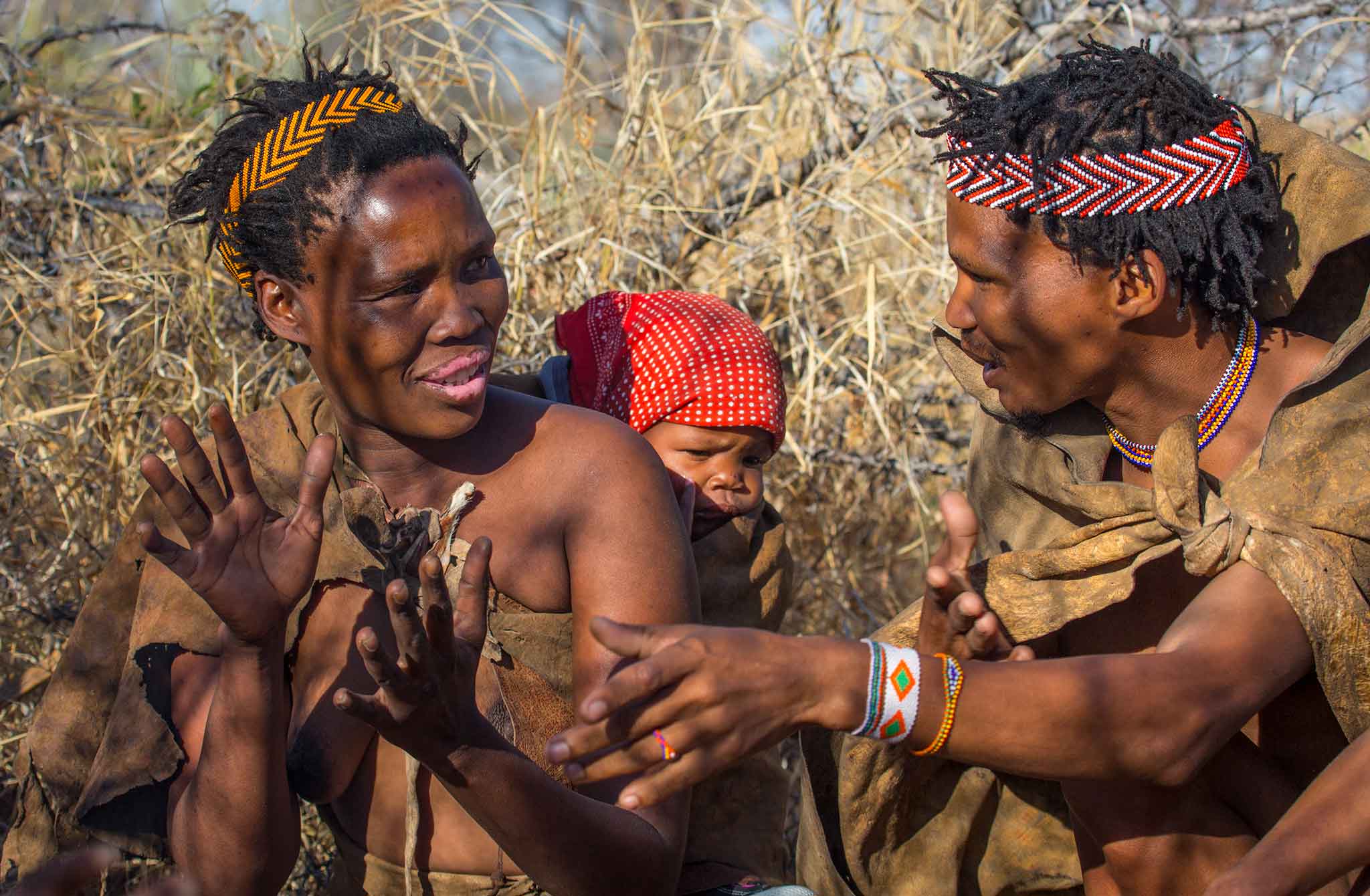 This San family live at Jack's Camp and share a glimpse of a lost lifestyle. In a contemporary world, the lot of the indigenous hunter gatherer is not an easy one. Denied access to land that has been locked up for National Parks or agriculture, they are unable to use their traditional hunting tools of snares and poisoned arrows.